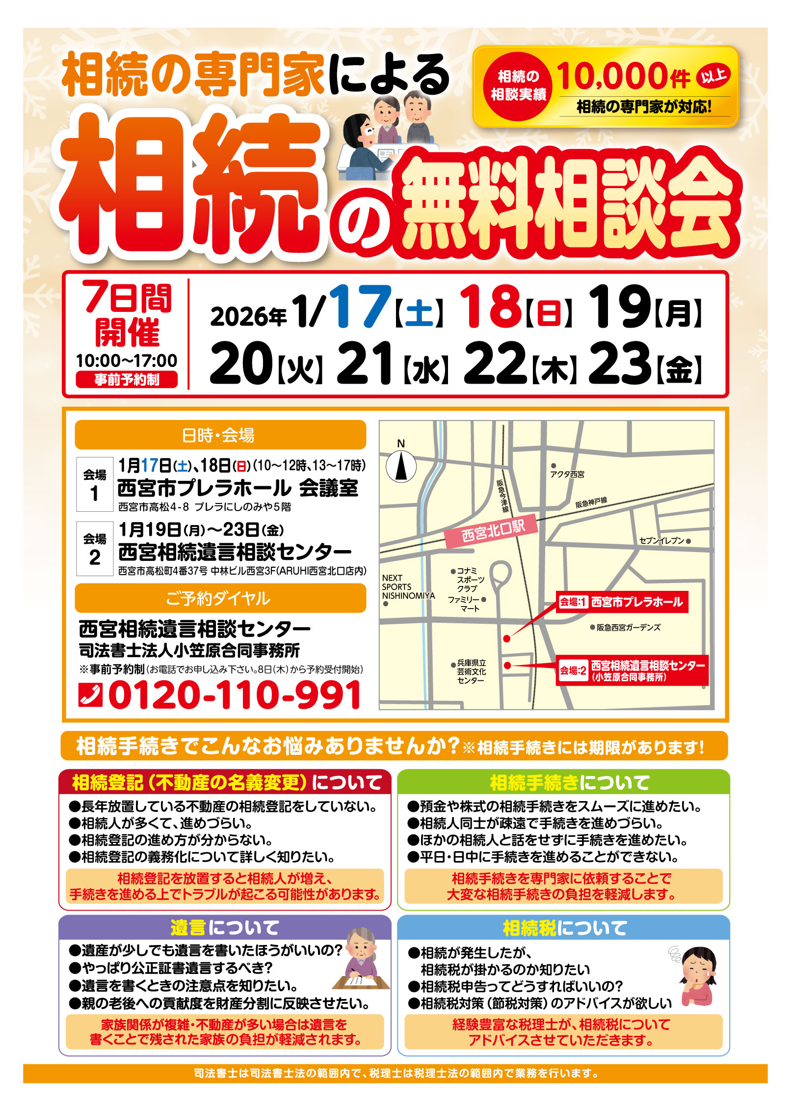 1月17日(土)~23日(金)「無料相続相談会」開催!